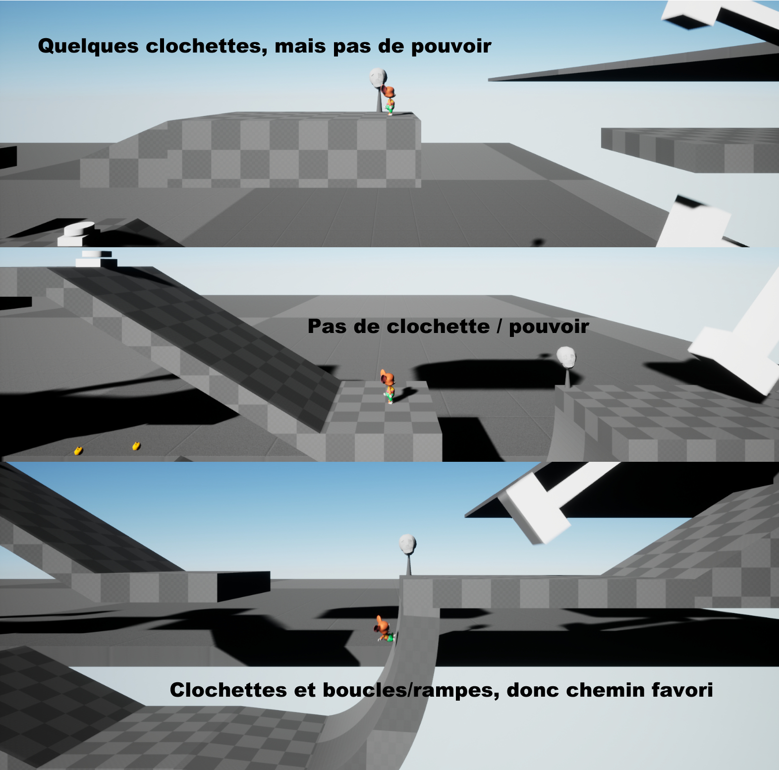 ¤ By calculating the character's metrics, the initial layout was modified to allow players to complete the level as quickly as possible using different strategies.